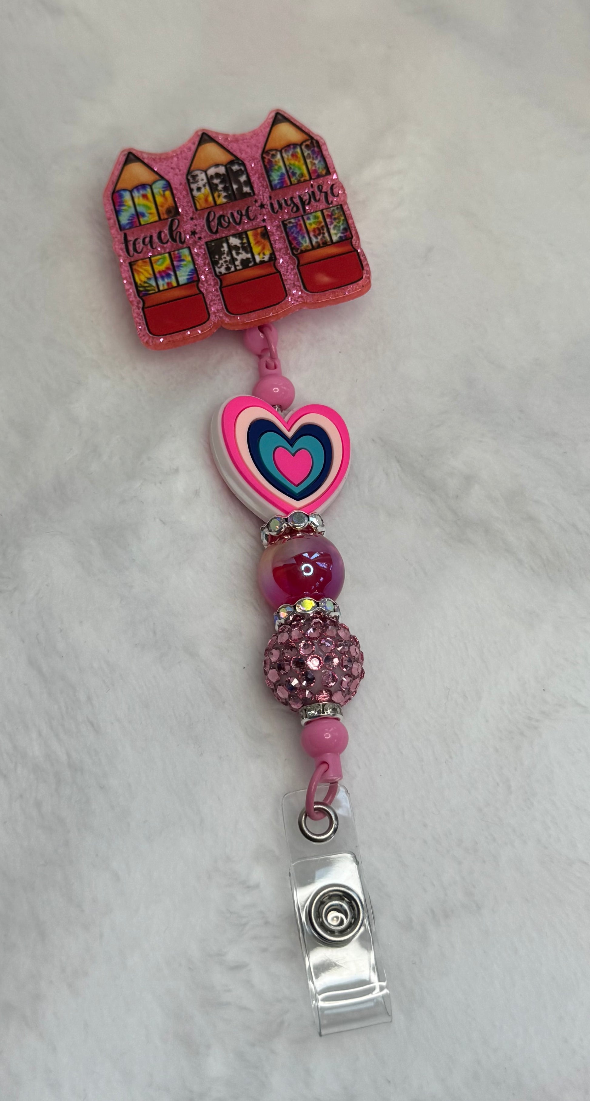 All badge reels can be customized to have beads as an accent feature upon request. Price will increase. $6 without beads and $10 with beads. All acrylics can be customized into a keychains upon request. Price without beads $6, with beads and tassel $8.